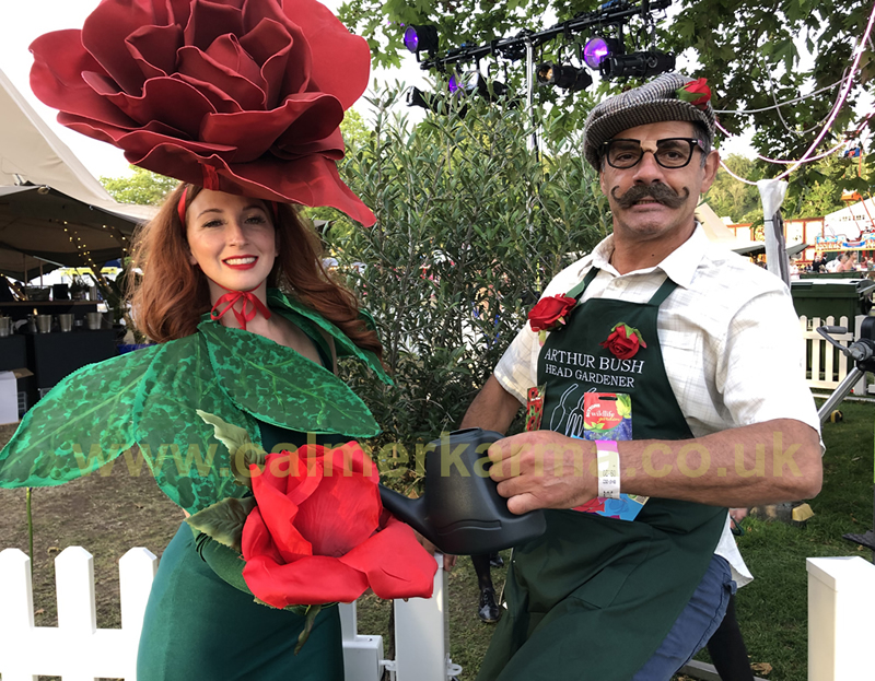 Comic Garden themed walkabout with the eccentric gardener Arthur Bush and his prize winning Bloom Miss Rose; expect floral hilarity from these madcap floral walkabout performers spreading happiness come rain or shine; a blooming marvellous act for your garden party or floral themed event -